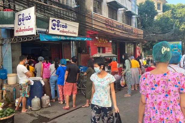 Người dân Myanmar xếp hàng mua hàng hóa thiết yếu sau khi quân đội tiến hành chính biến hôm 1-2. Ảnh: TWITTER