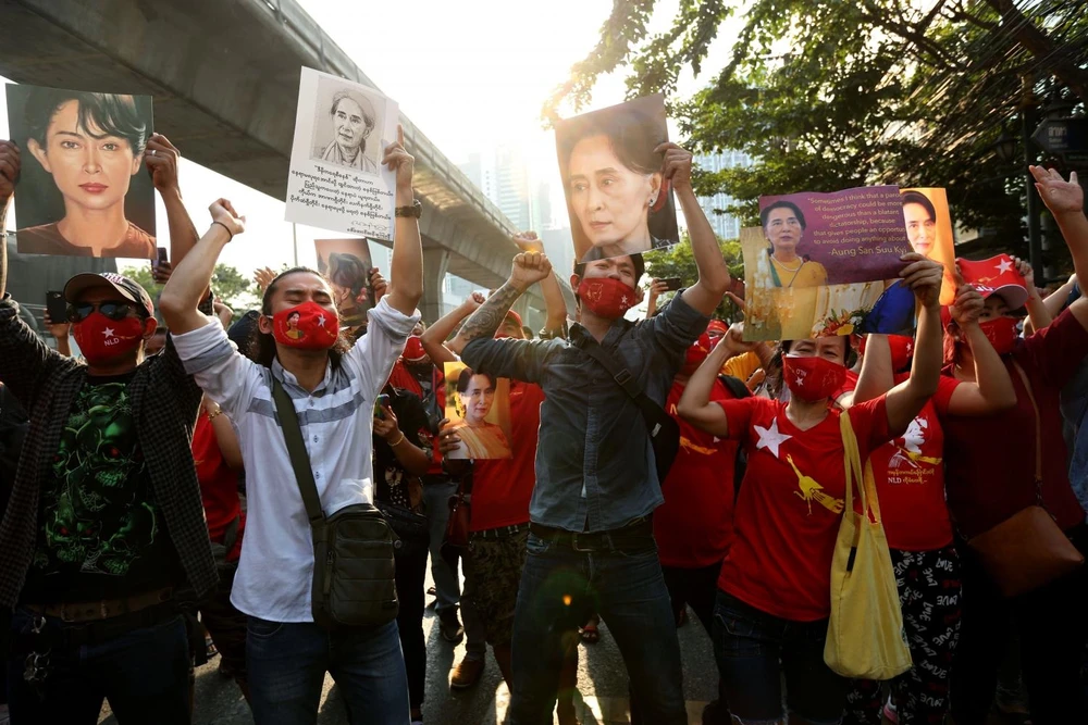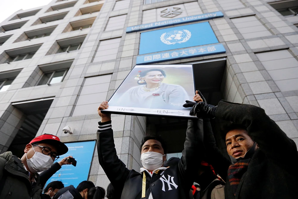 Trong khi đó, hàng trăm người Myanmar ở Nhật đã tập trung bên ngoài Đại học Liên Hợp Quốc tại thủ đô Tokyo, cầm theo ảnh của bà Suu Kyi và hô to các khẩu hiệu phản đối chính biến ở Naypyidaw, hãng tin Reuters cho hay.