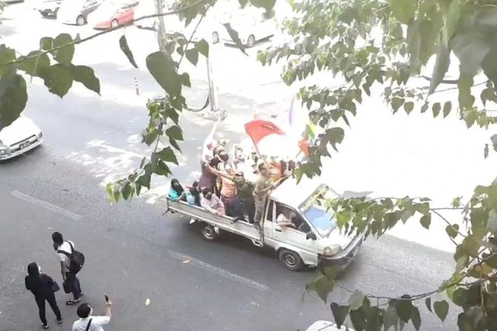 Bangkok Post cho biết khoảng 20 người Thái, bao gồm một số lãnh đạo phong trào phản đối Hoàng gia Thái Lan, đã cùng tham gia cùng người biểu tình Myanmar.