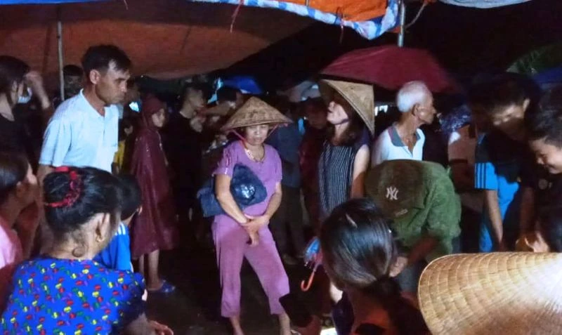 Rất đông người dân từng đội mưa cả đêm đứng trước nhà ông Đ. Ảnh: Đ.L
