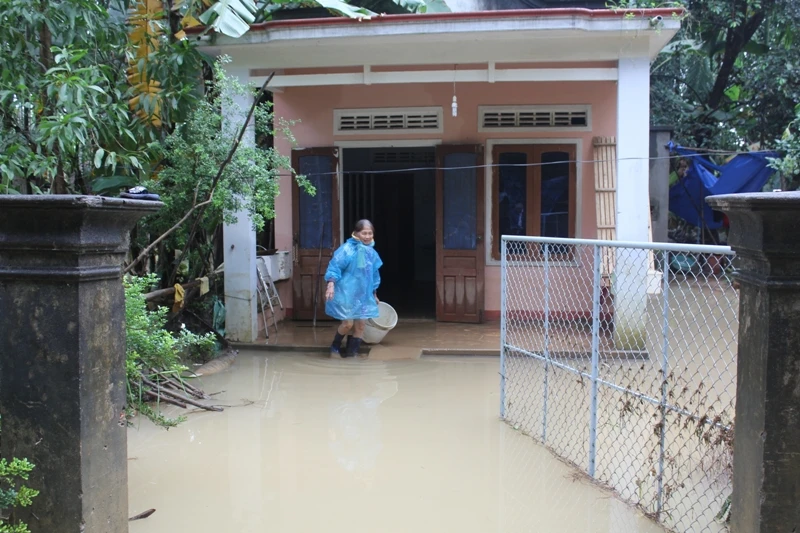 Bà Mai Thị Bích Đào - hộ neo đơn ở xã Hành Dũng rất cần hỗ trợ gạo. Trong chiều 17-12, bà đã được bà con trong xóm đến giúp cào dọn bùn non