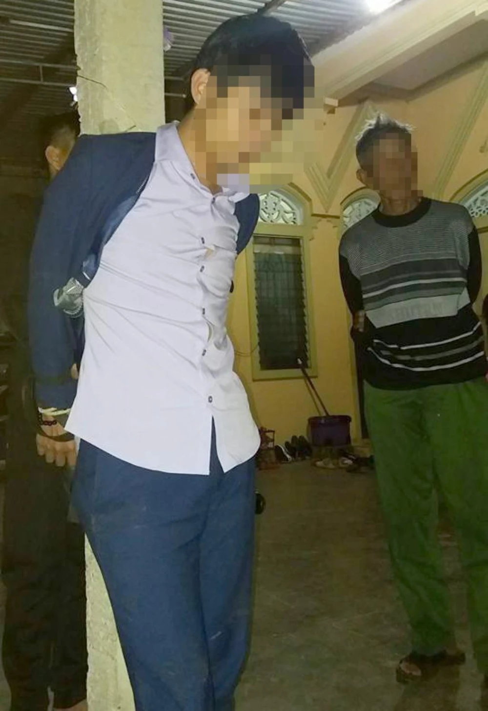 Thanh niên bị người dân bắt giữ sau đó giao công an.