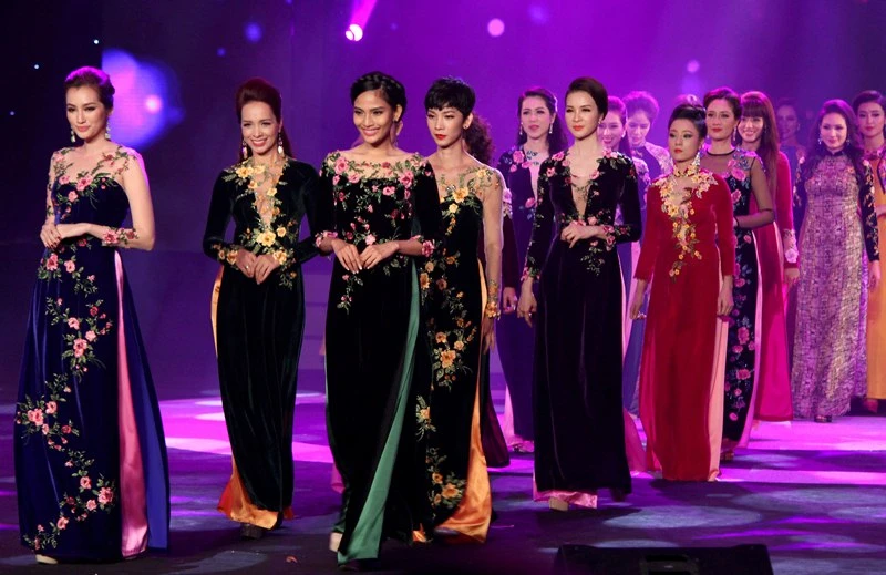 Đặc biệt, đêm hội còn có sự hiện diện của những người đẹp vang bóng một thời mà đã nhiều năm không sải bước trên sân khấu như Thanh Mai, La Kim Phụng, Thúy Hạnh, Băng Châu, Tăng Huệ Văn, Thụy Quân… Các người đẹp nhanh chóng bắt nhịp với đàn em trong hai phần trình diễn trang phục áo dài được thiết kế rất ấn tượng.