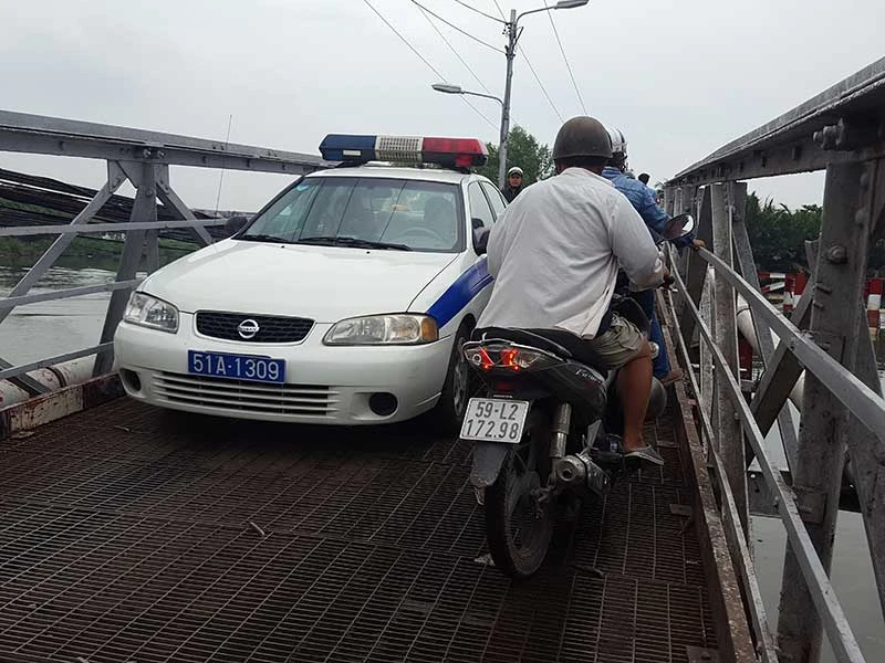 Theo ghi nhận của chúng tôi, những cây cầu sắt này có tuổi đời trên dưới 60 năm. Cầu có quy mô nhỏ lại qua sử dụng lâu nên xuống cấp nghiêm trọng. Trụ cầu, bệ đỡ bê tông nghiêng ngả, những thanh thép, hành lang bảo vệ lưới thép, mặt nền cầu đều đã rỉ sét, mòn, gãy… Nhiều mối hàn, ốc vít đã biến mất khiến mỗi khi có phương tiện đi qua, các thanh sắt lại rung lên bần bật. Bề rộng của cầu chỉ đảm bảo cho một chiếc xe ba gác hoặc một chiếc xe hơi nhỏ qua cầu, vì thế các phương tiện phải xếp hàng mới được đi qua. Chính vì vậy, cứ giờ cao điểm là bốn cây cầu đều kẹt cứng.