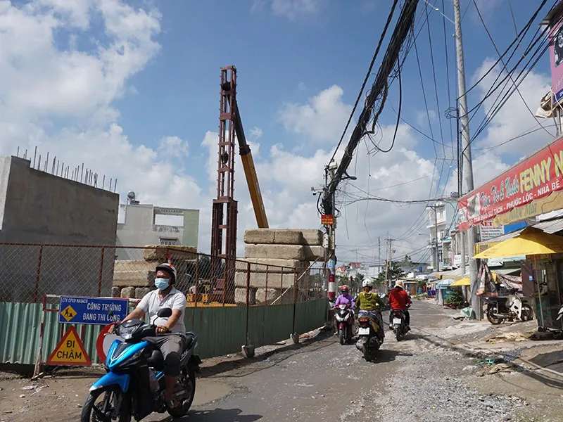 Hiện trường thi công dự án cầu Phước Lộc, huyện Nhà Bè, TP.HCM. Ảnh: THU TRINH
