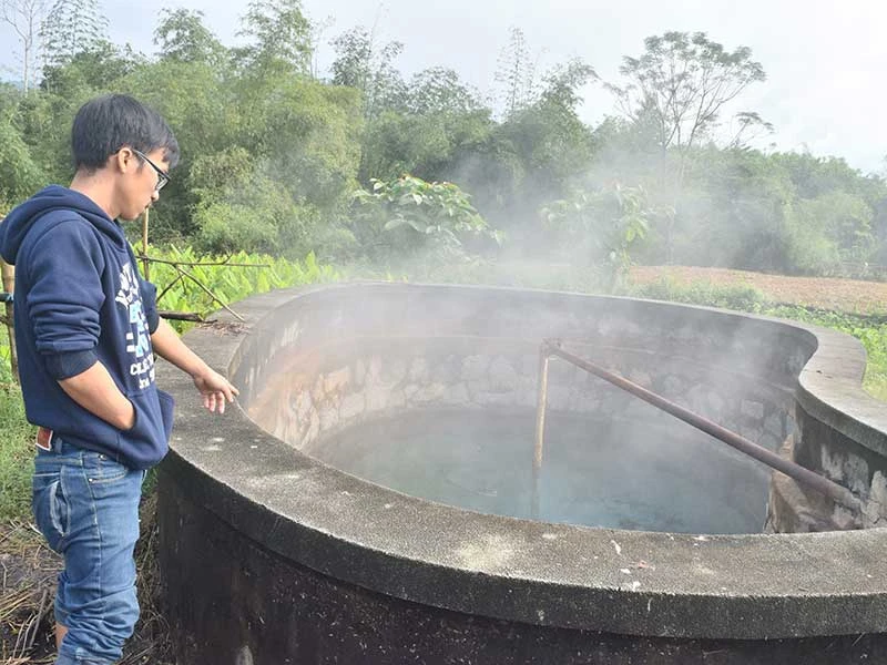 Hồ nước nóng bị bỏ hoang có nhiệt độ lên đến 80 độ C. Ảnh: N.TRI
