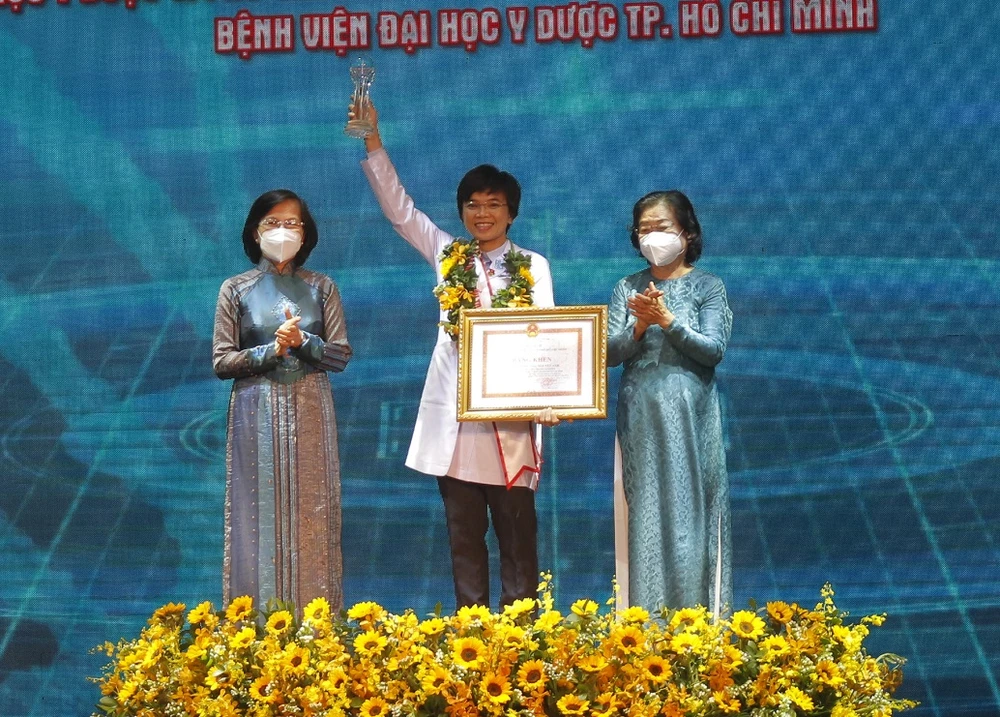 Bác sĩ Huỳnh Phương Nguyệt Anh (BV ĐH Y Dược) cũng vừa nhận danh hiệu Công dân trẻ tiêu biểu TP.HCM 2021. Cầm bằng khen trên tay, cô gửi lời cảm ơn đến các đồng đội của mình: "Có rất nhiều y bác sĩ xứng đáng hơn tôi, họ đều là những công dân trẻ tiêu biểu của thành phố. Cảm ơn vì thời gian qua đã cùng nhau cố gắng, cống hiến. Chúng tôi đã dùng tất cả thanh xuân, năng lượng sống của cả cuộc đời chỉ cho một năm 2021".