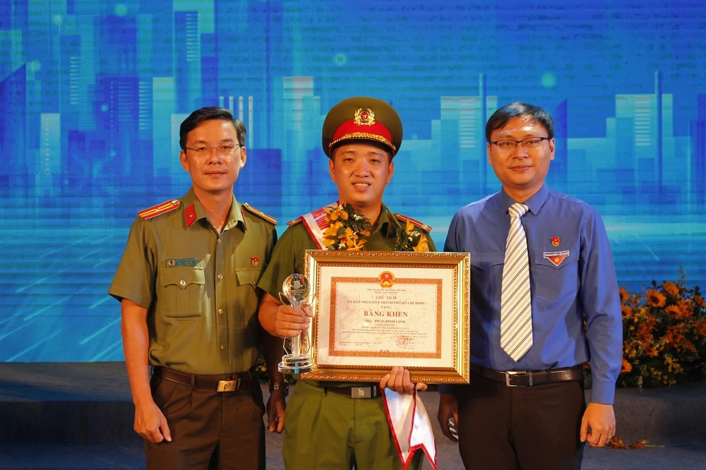 Trung úy Phan Đình Linh là một trong 14 công dân trẻ tiêu biểu TP.HCM năm 2021. Ảnh: KHÁNH CHI