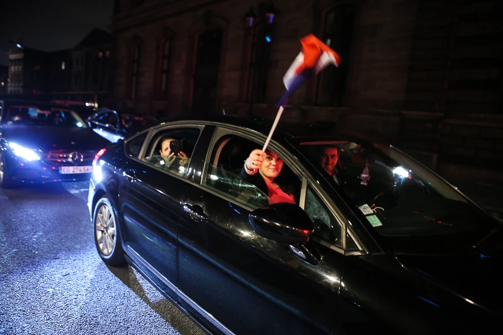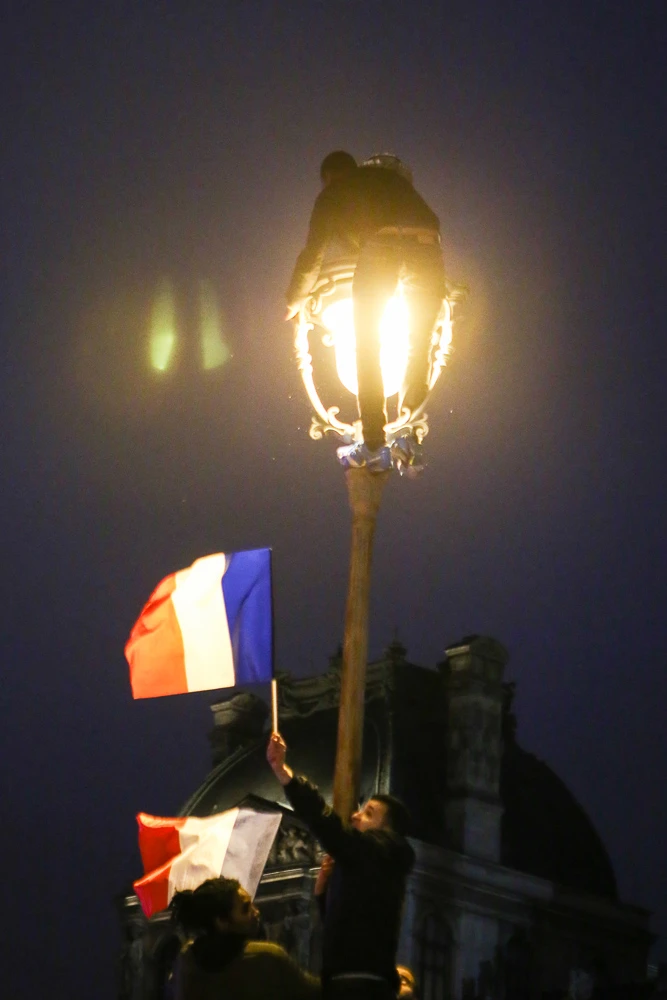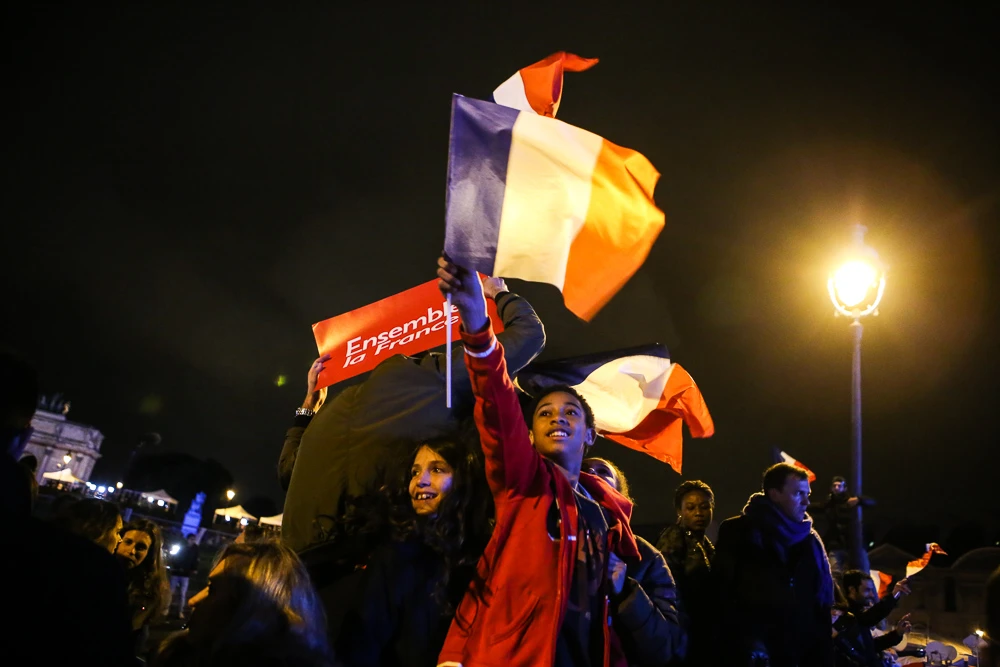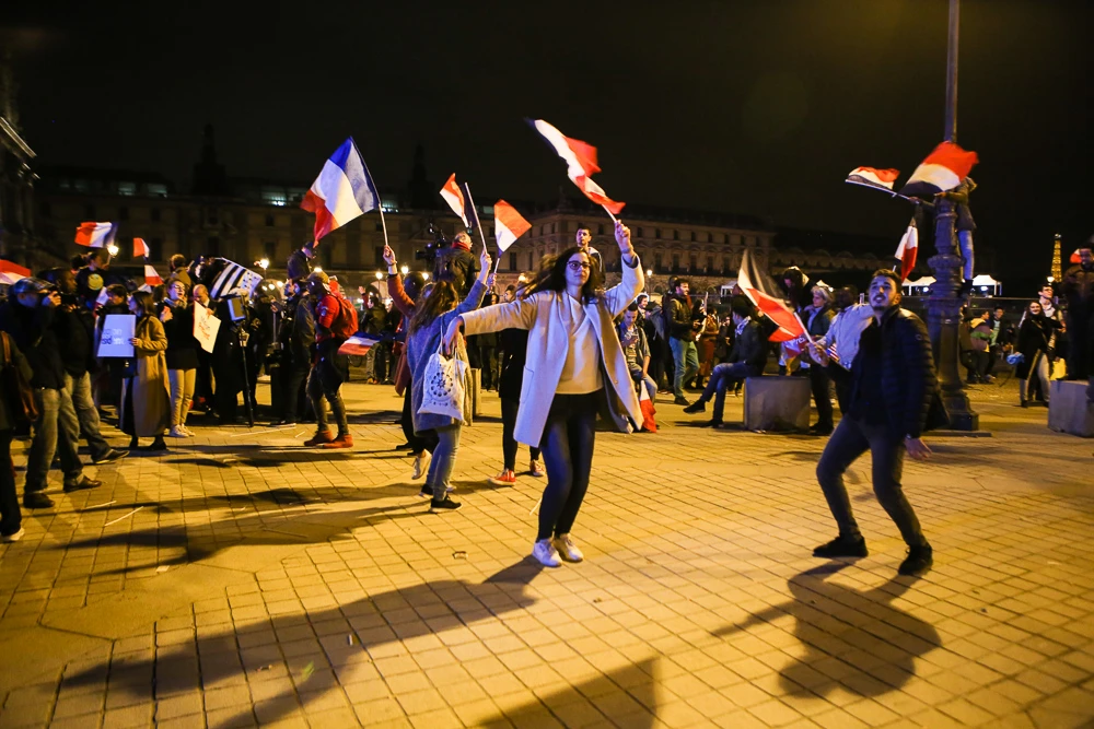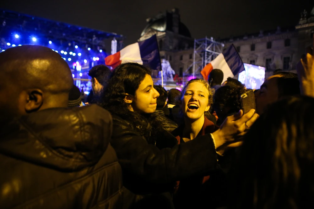 Hoạt động ăn mừng chiến thắng của Macron diễn ra trên khắp các đường phố ở Paris đến quá nửa đêm.