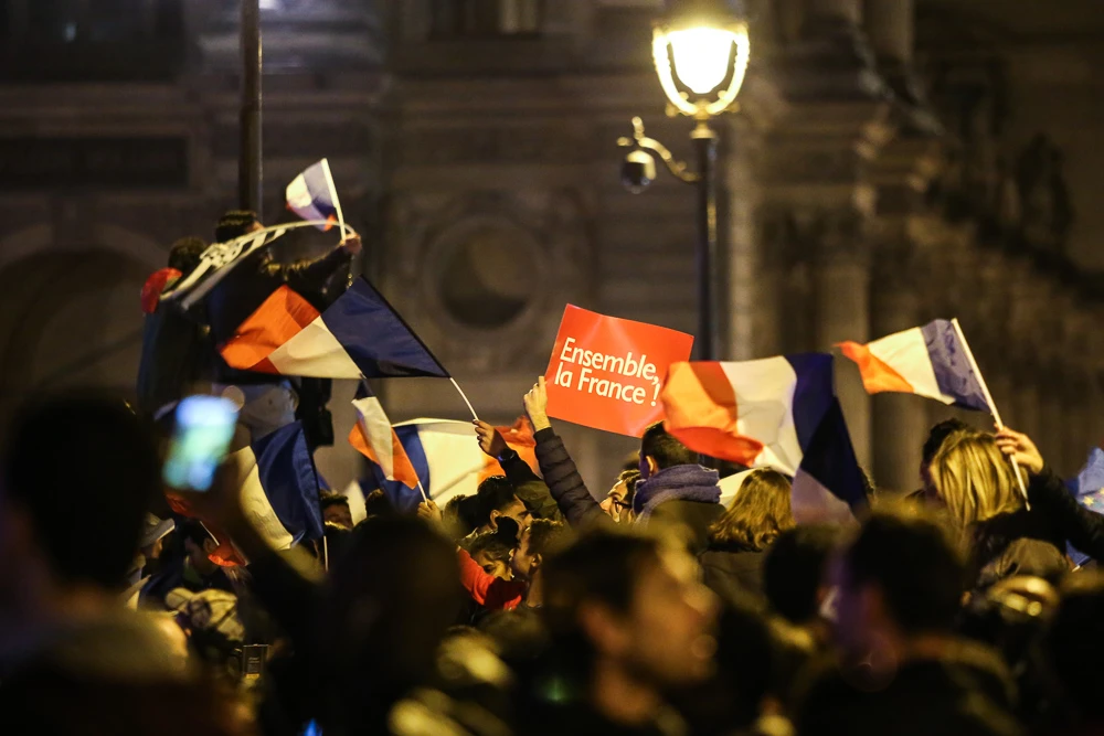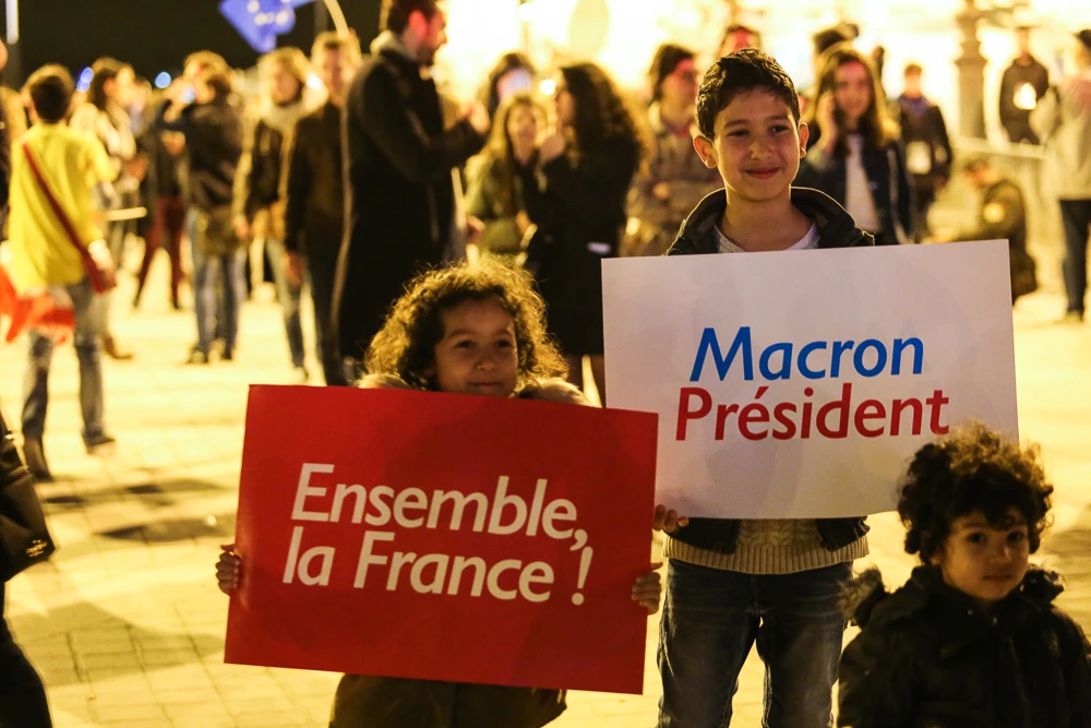 “Ensemble la France” (Nước Pháp đoàn kết lại), khẩu hiệu tranh cử của Macron trong suốt chiến dịch của ông.