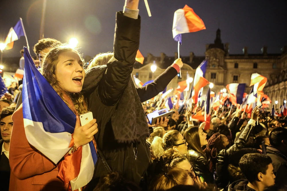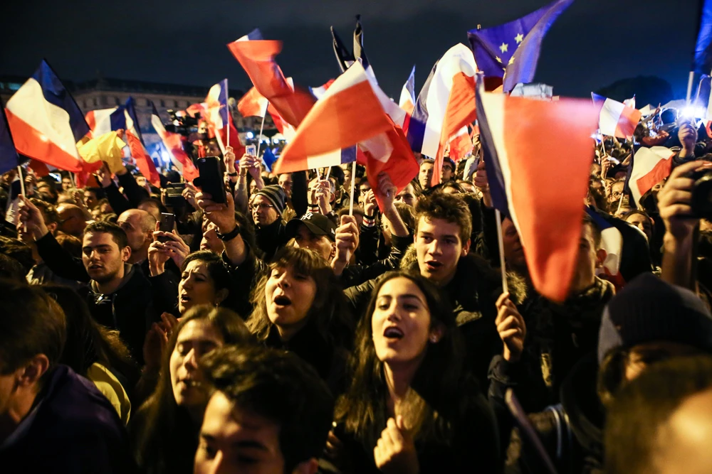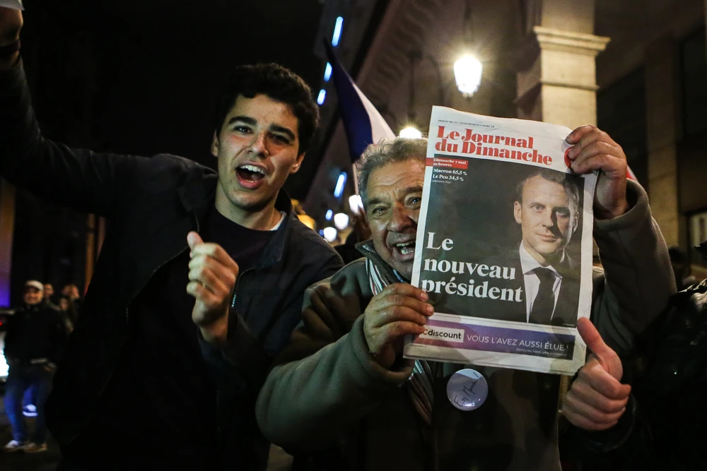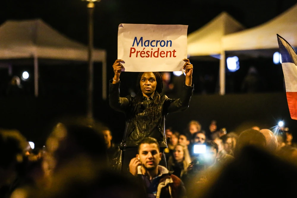 Người ủng hộ Macron hô vang tên ông “Macron President!” (Tổng thống Macron) khi ông xuất hiện.