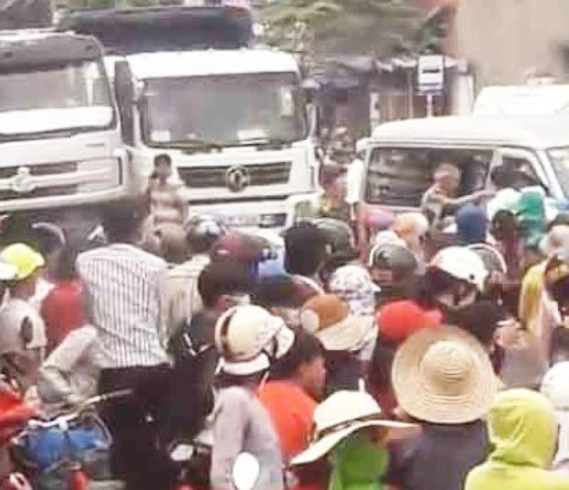 Hàng trăm người dân xã Mỹ An tập trung trên quốc lộ 1 yêu cầu dừng dự án xây dựng nhà máy chế biến thủy sản.