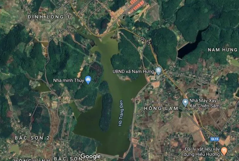 Vị trí Ttại chăn nuôi heo giống siêu nạc Nam Hưng ngay đầu nguồn nước hồ Tràng Đen.