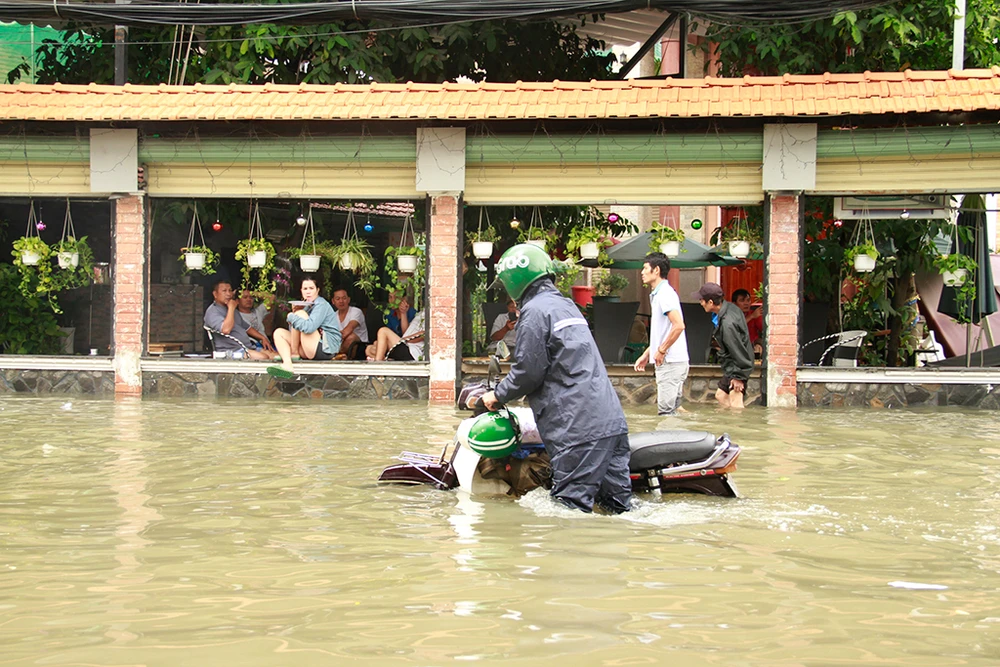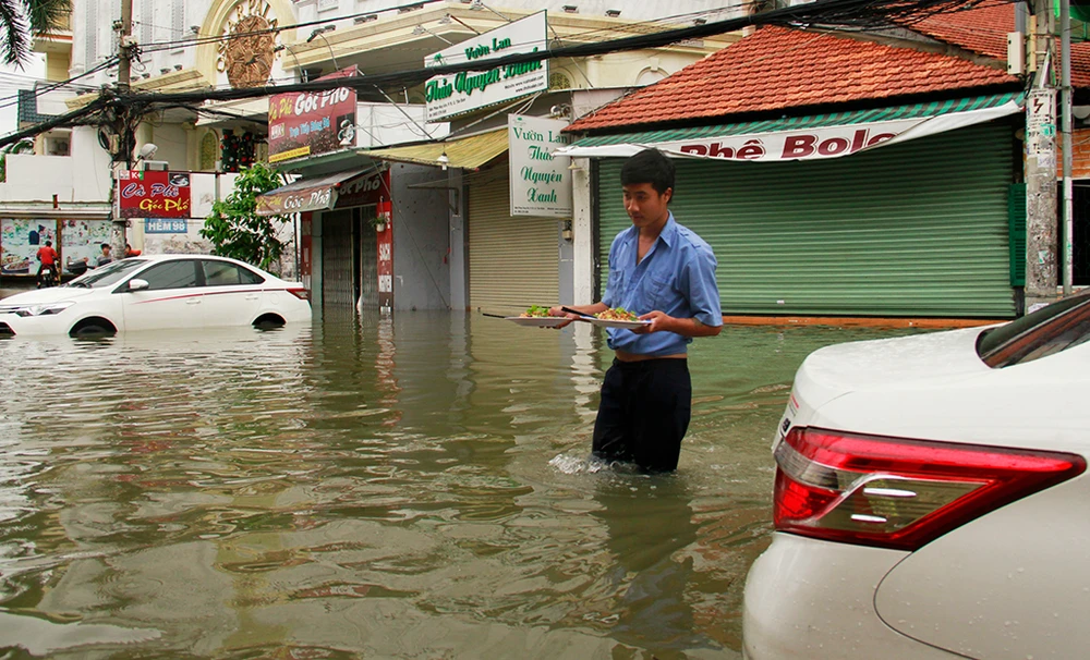 Nước dâng cao khiến hàng loạt cửa hàng, quán cà phê gián đoạn việc kinh doanh buôn bán. Tất cả sẽ bắt đầu trở lại sau khi nước rút.