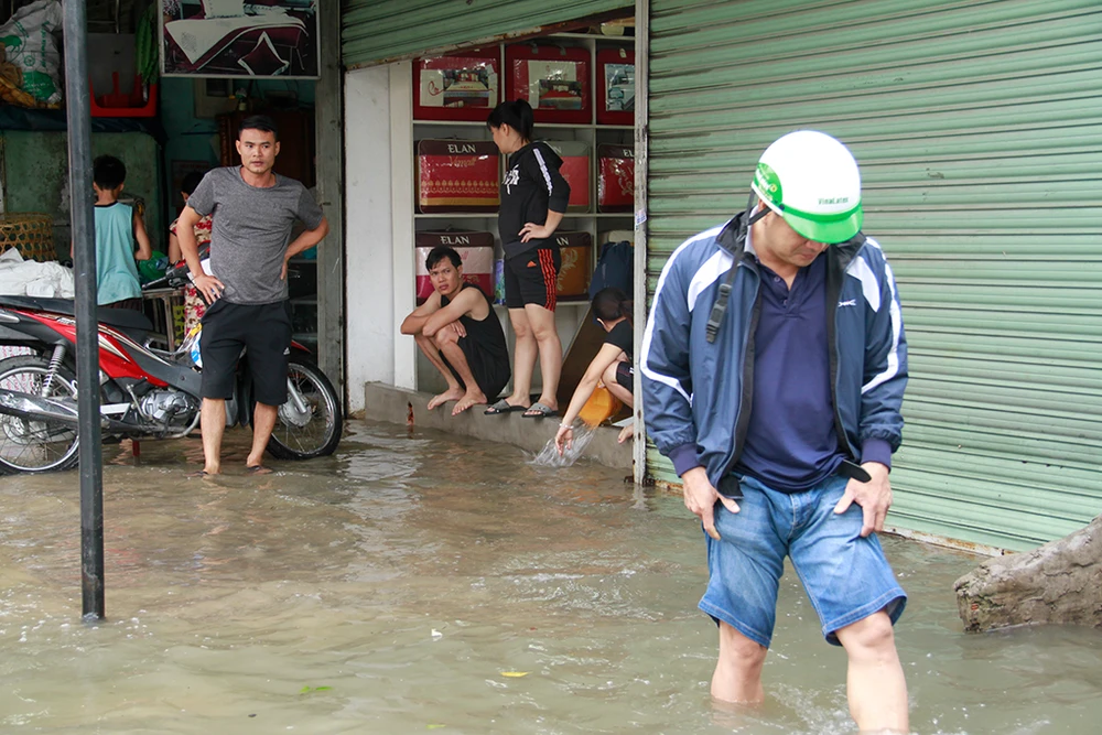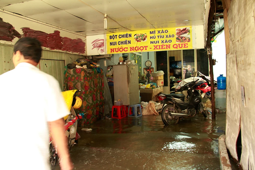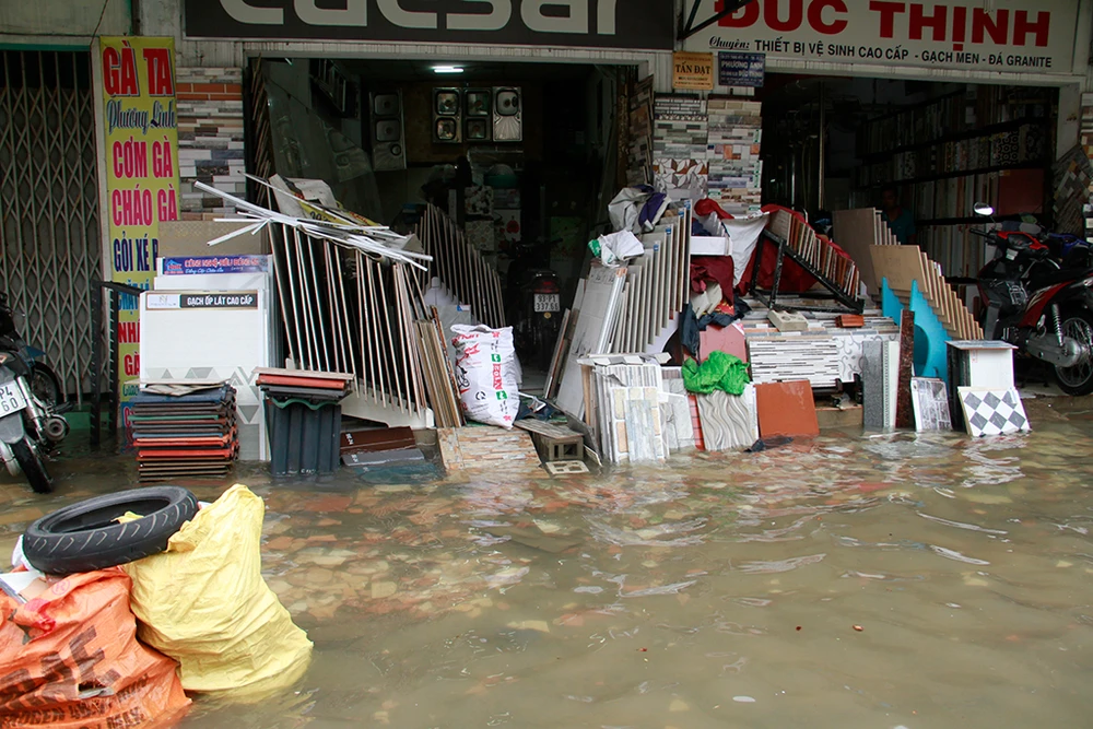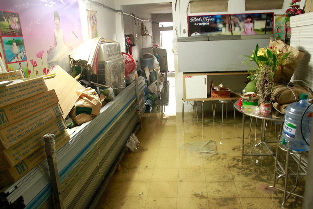 Nước tràn vào nhà dân làm hư hỏng đồ đạc, tài sản, đặc biệt là các hộ kinh doanh vật liệu xây dựng.