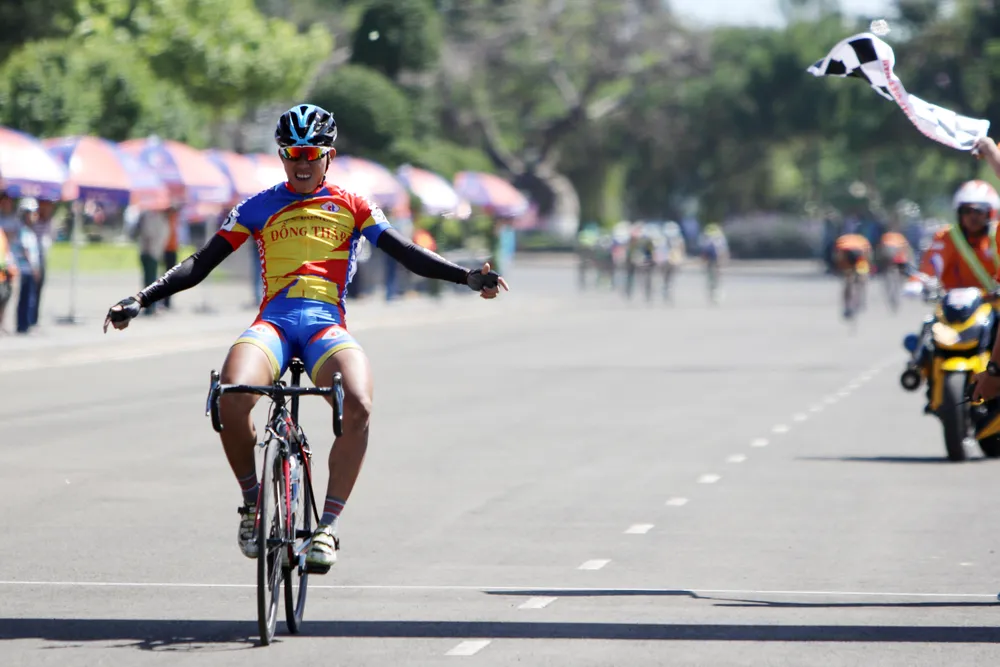 "Cựu vương" Đỗ Tuấn Anh (Calytos Đồng Tháp) là tay đua phát pháo, khơi mào cuộc bứt phá của các VĐV nhóm đầu.