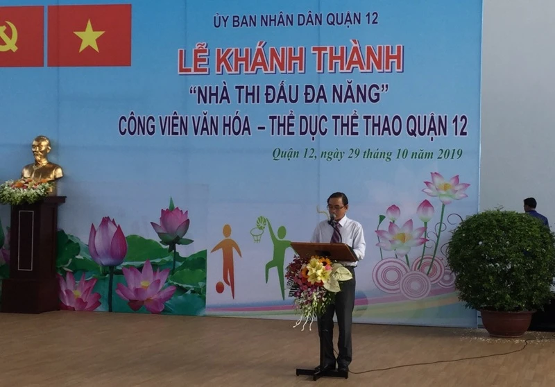 Phát biểu chỉ đạo tại buổi lễ khánh thành, ông Lý Minh Trúc, Phó Bí thư Quận ủy quận 12, cho biết công trình nhà thi đấu đa năng là một trong những công trình trọng điểm theo Nghị quyết đại hội đại biểu Đảng bộ quận 12 lần thứ 5 nhiệm kỳ 2015-2010. Qua đó, quận ủy, UBND quận 12 đã tập trung quán triệt, chỉ đạo phòng, ban triển khai thực hiện công trình theo kế hoạch, tiến độ đã đề ra.