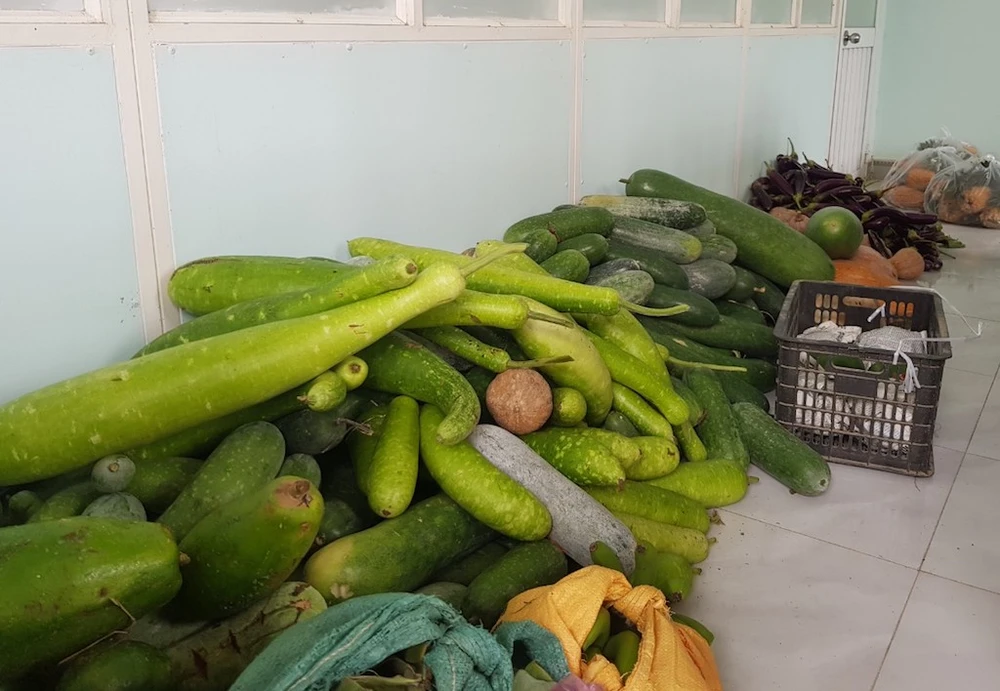 Rau củ người dân ủng hộ gửi vào bên trong khu cách ly. Ảnh: THANH NHẬT