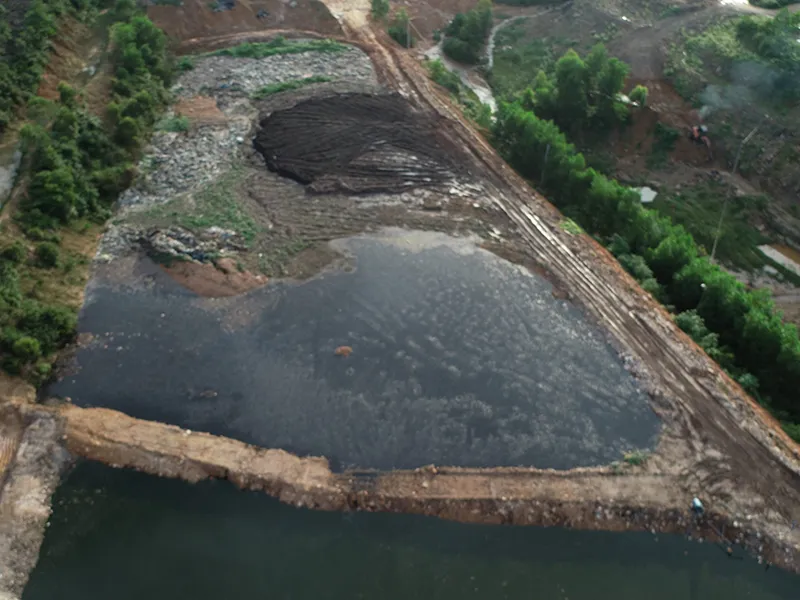 Từ phản ánh của người dân, ngày 18-8, PV Pháp Luật TP.HCMcó mặt tại khu vực bãi rác Khe Giang. Tại hiện trường, mùi hôi thối nồng nặc bốc lên. Khu vực cuối hồ chứa nước rỉ rác xuất hiện một rãnh nước mới đào còn nham nhở. Tại khu vực hồ chứa nước thải, nước đã ngấp nghé bờ. Hệ thống bờ bao xung quanh chỉ được đắp bằng đất đỏ tạm bợ.