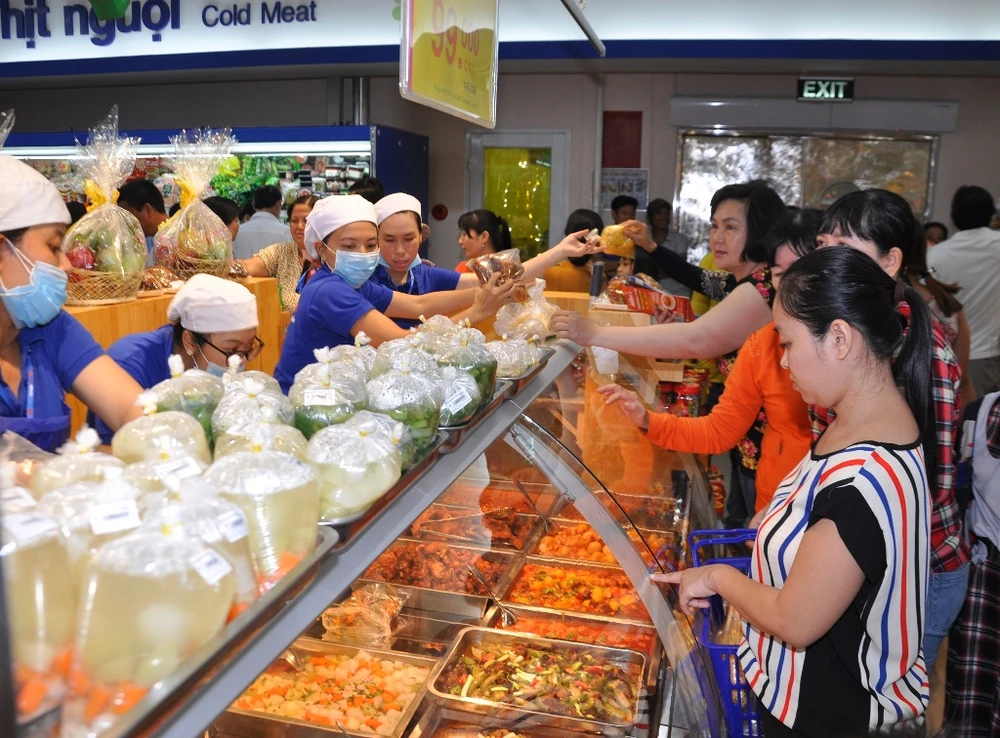 Quầy chế biến sẵn của siêu thị Co.opmart luôn đông khách.