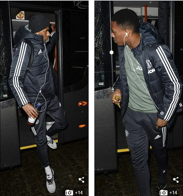 Dưới đây là chùm ảnh cầu thủ MU ủ rũ bước xuống xe buýt nhận phòng khách sạn trước trận gặp Everton: