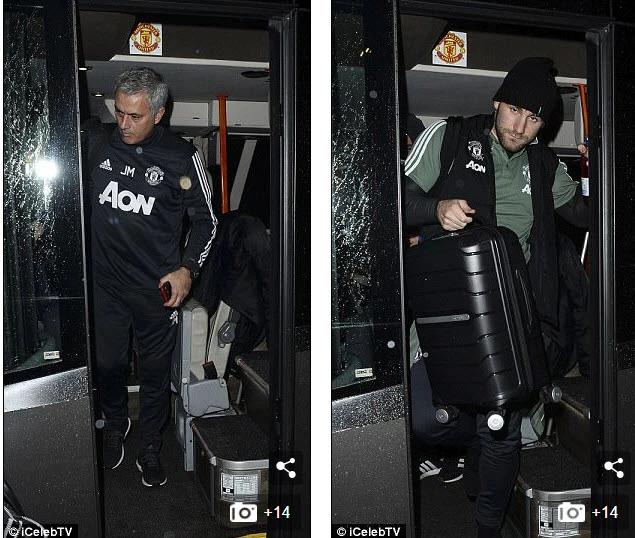 Dàn sao MU và HLV Mourinho mỏi mệt bước xuống xe bus.