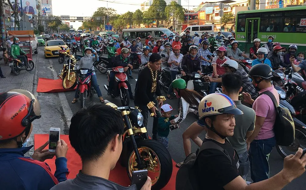 Phúc XO nổi tiếng với việc đeo nhiều vàng nhất Việt Nam và có dàn xe mạ vàng. Ảnh NT.