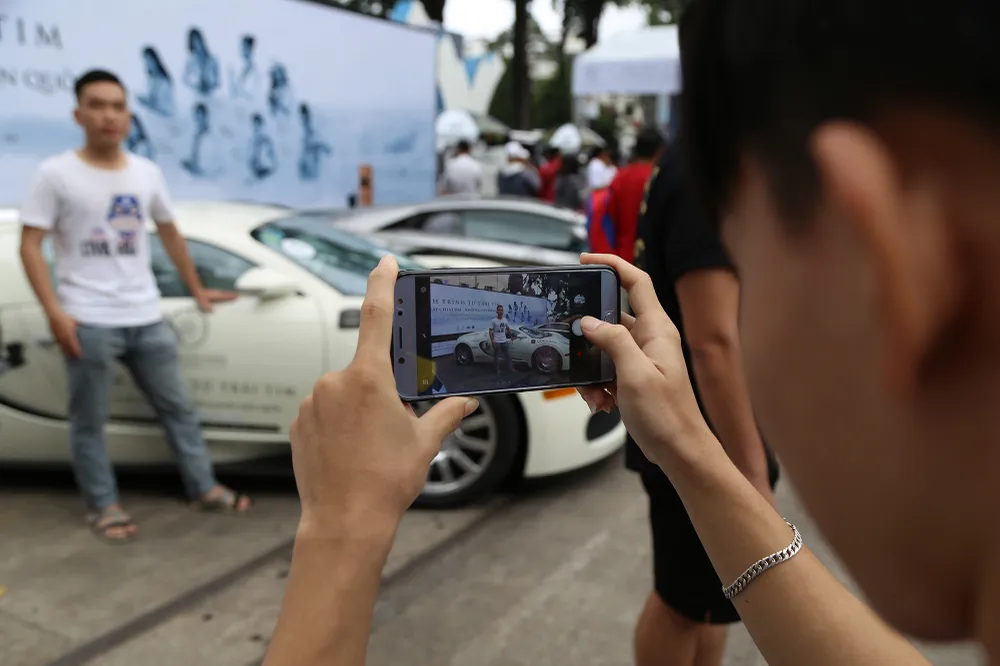 Nhiều người thích thú ngắm nhìn và ghi lại hình ảnh bên các siêu xe.
