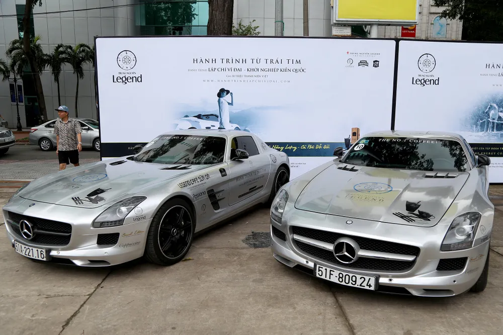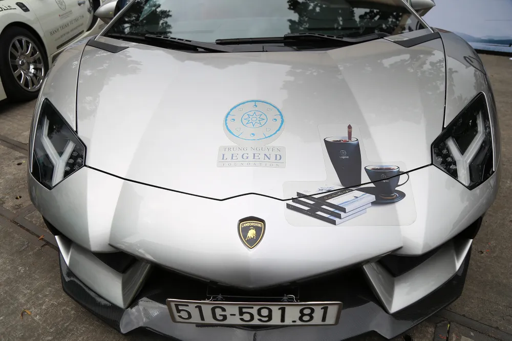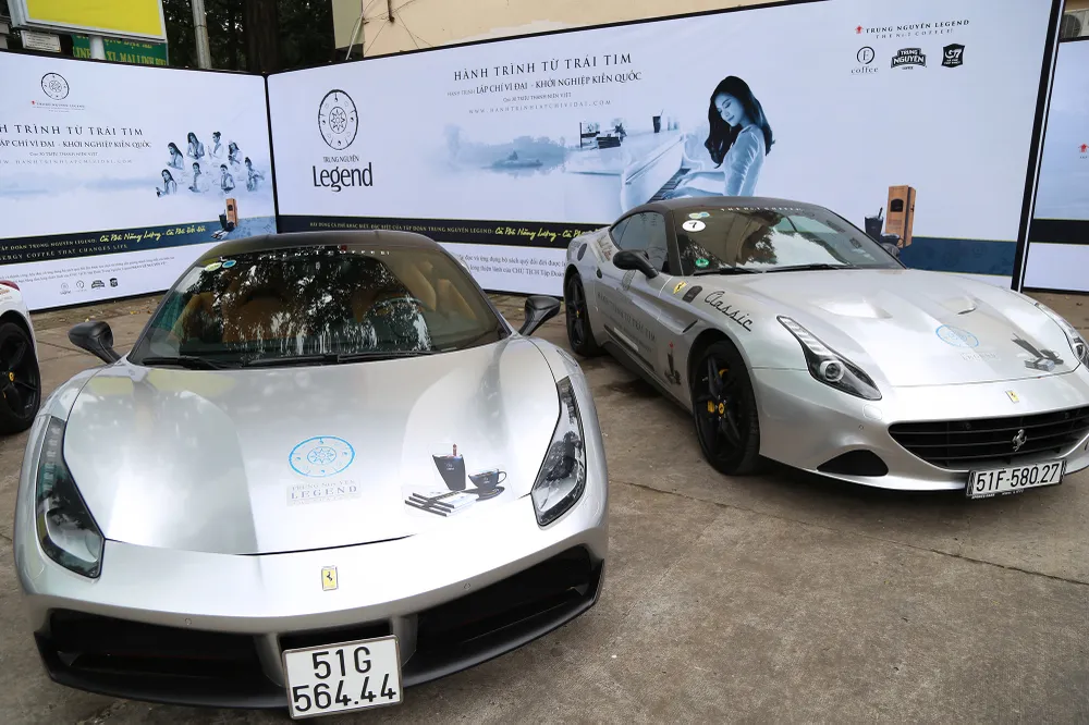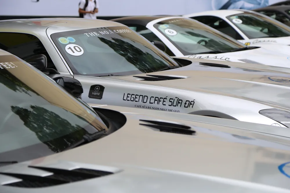 Những siêu xe được dán số thứ tự và thông điệp hành trình từ trái tim của Tập đoàn Trung Nguyên.