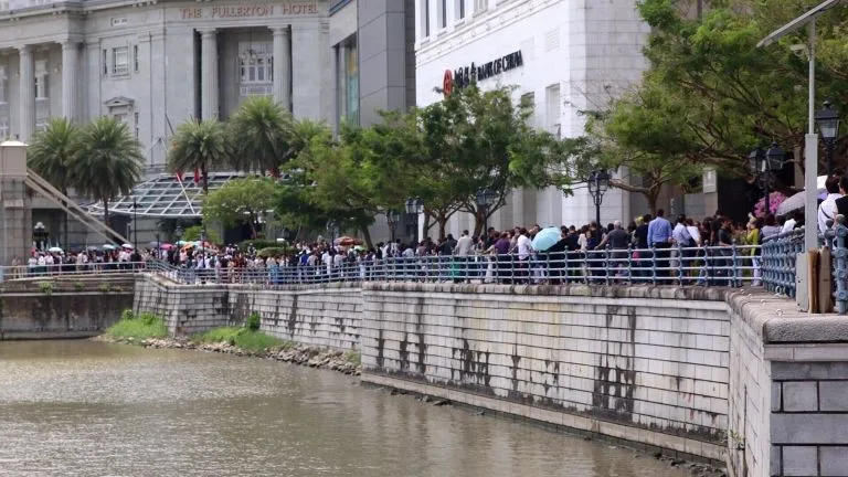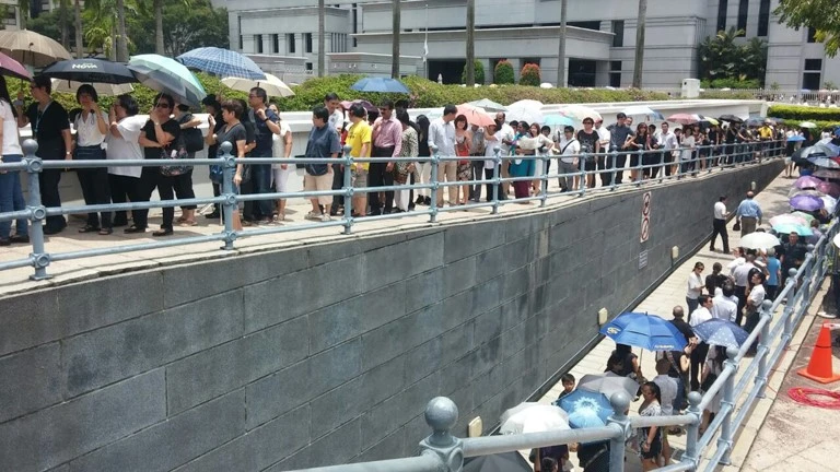 Người dân được khuyên nên kiên nhẫn chờ đợi và làm theo sự hướng dẫn của cảnh sát. Những người muốn tham gia xếp hàng nên đi ra từ nhà ga tàu điện ngầm Clarke Quay.
