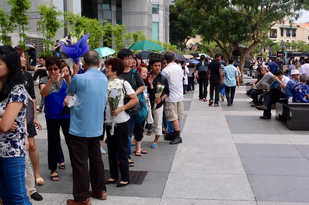 Người dân xếp hàng chờ vào viếng ông Lý Quang Diệu