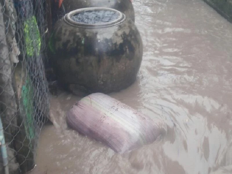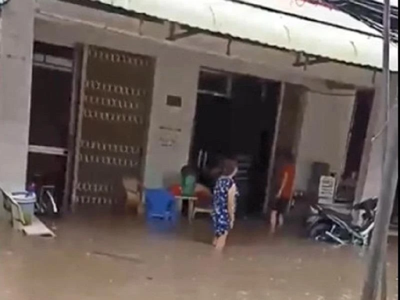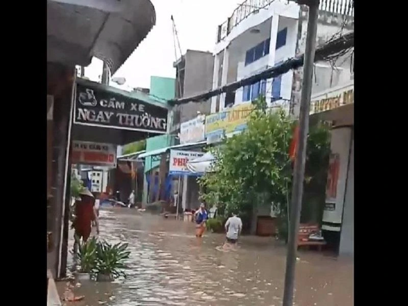 Nước dâng lúc 14 giờ ngày 3-8-2019 tại thị trấn Sông Đốc, Cà Mau. Ảnh: CTV
