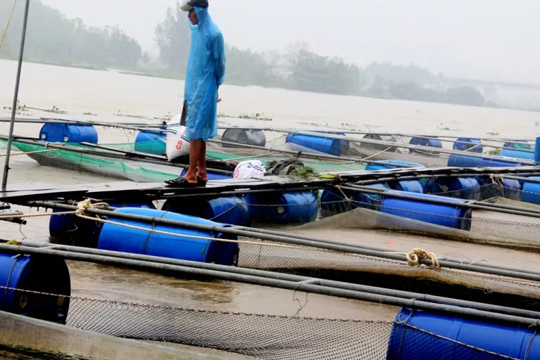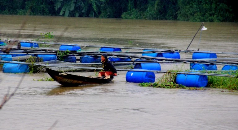 Nhiều lồng cá đã bị cuốn trôi.