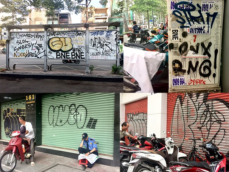 Ghi nhận trên rất nhiều tuyến đường trong thành phố, các hình vẽ xuất hiện nhan nhản ở khắp mọi nơi. Có hình nhiều màu sắc, cũng có hình chỉ một màu đen lem luốc. Ông Nguyễn Minh Nhật (quận 1) bức xúc: “Ai cũng ráng giữ nhà cửa mình sạch đẹp nhưng những người vô ý thức vẫn cứ tùy tiện xịt sơn lên tường nhà người khác. Đẹp đâu không thấy, chỉ thấy chủ nhà phải bỏ công, bỏ của ra sơn lại rồi lại bị tái diễn”.