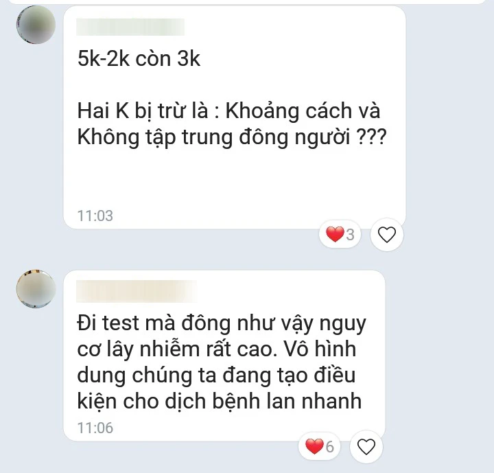 Bên cạnh đó, nhiều người dân phản ánh việc lấy mẫu test nhanh COVID-19 tại một số phường sắp xếp không khoa học dẫn tới việc tập trung quá đông người ở một nơi. Tình trạng lộn xộn khiến nhiều người không dám đến test vì sợ lây nhiễm.