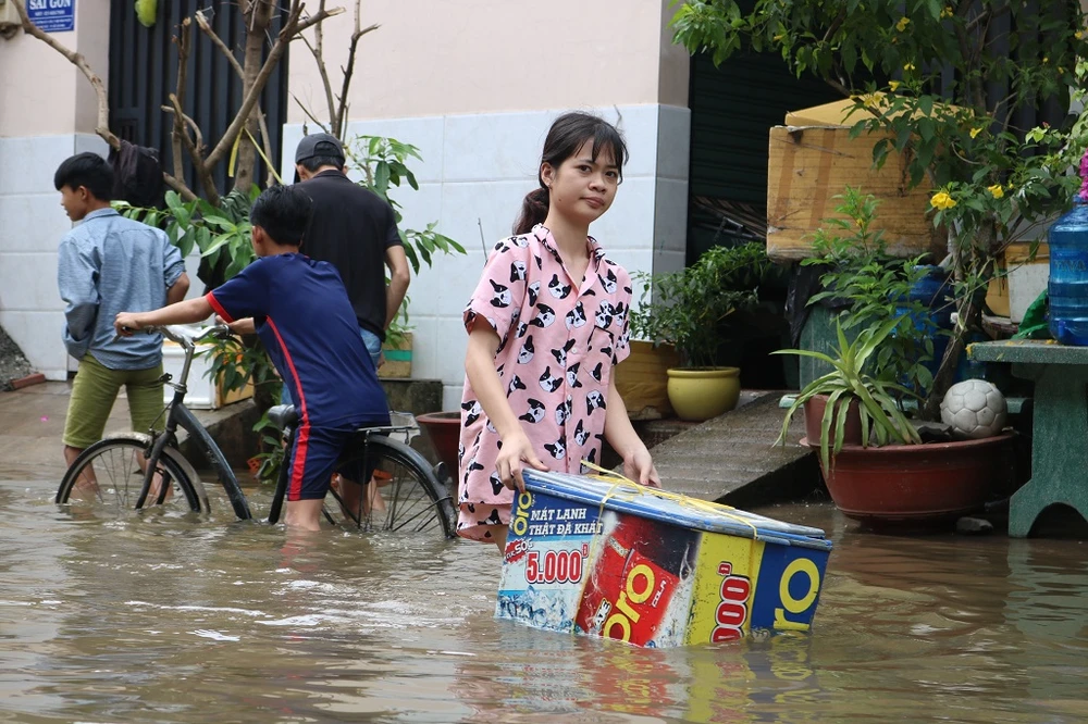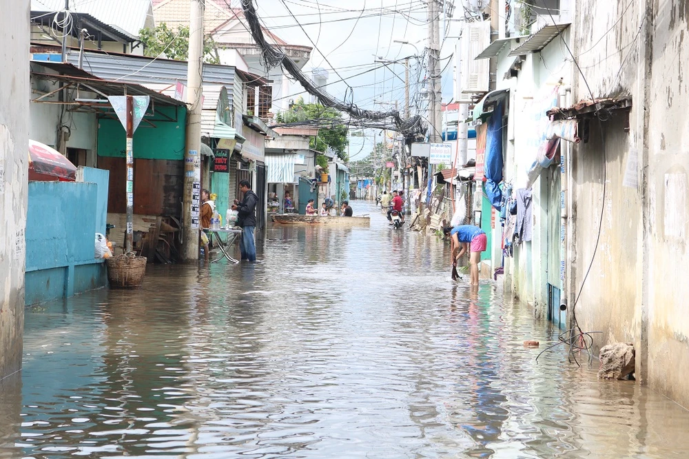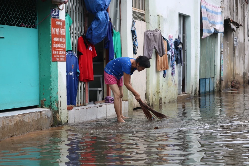 “Giờ là còn đỡ chứ sáng nay là ngập cao hơn đó cô ơi. Sáng nay mọi người không biết làm sao để đi ra ngoài, mấy nhà ở sâu trong kia người ta dùng xuồng để đi chứ không lội nước miết được. Có hai chiếc xe máy bị ngập, chết máy thì người ta bốc luôn lên bỏ trên ghe xuồng chở giúp” - một người dân vừa dọn dẹp nhà vừa nói với ra.