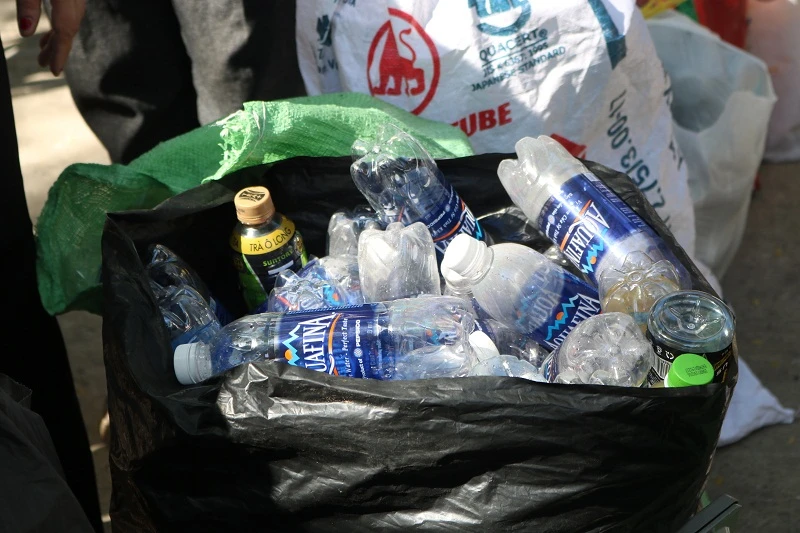 Rác thải được bỏ vào thùng rác chung, sau đó sẽ được phân loại và mang đi tái chế lại.