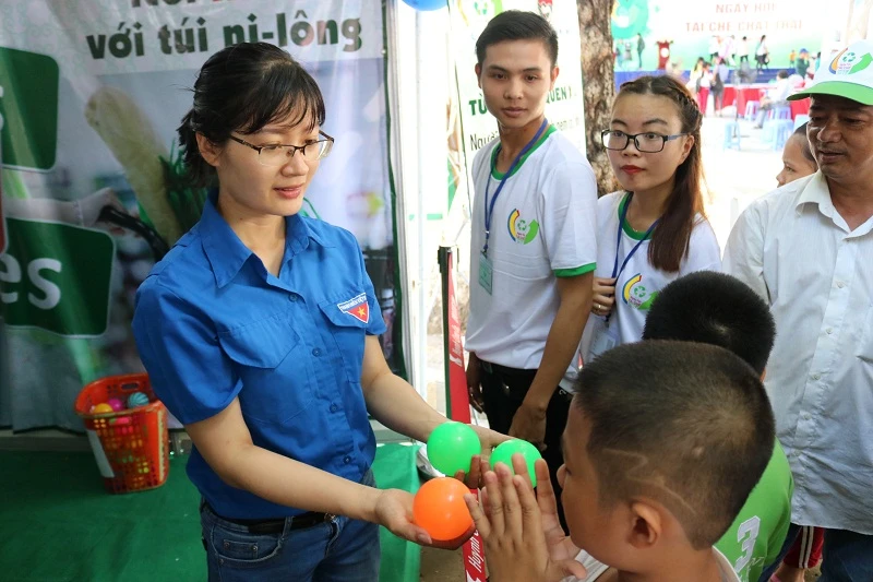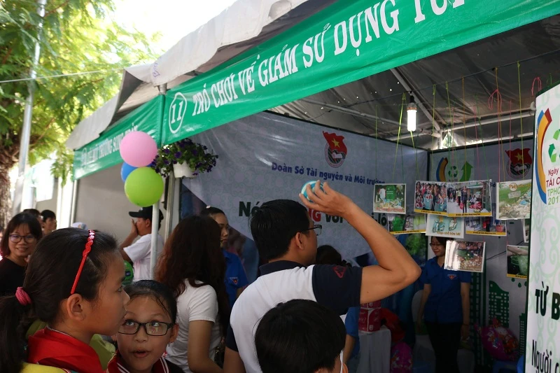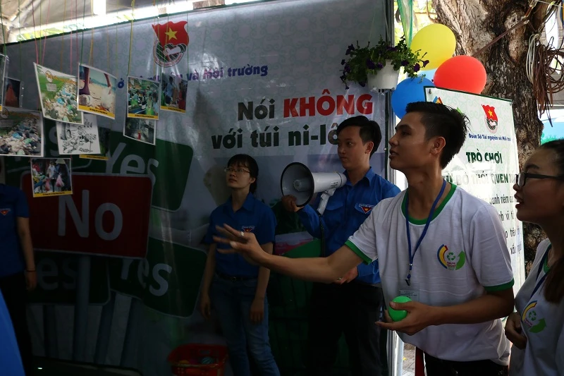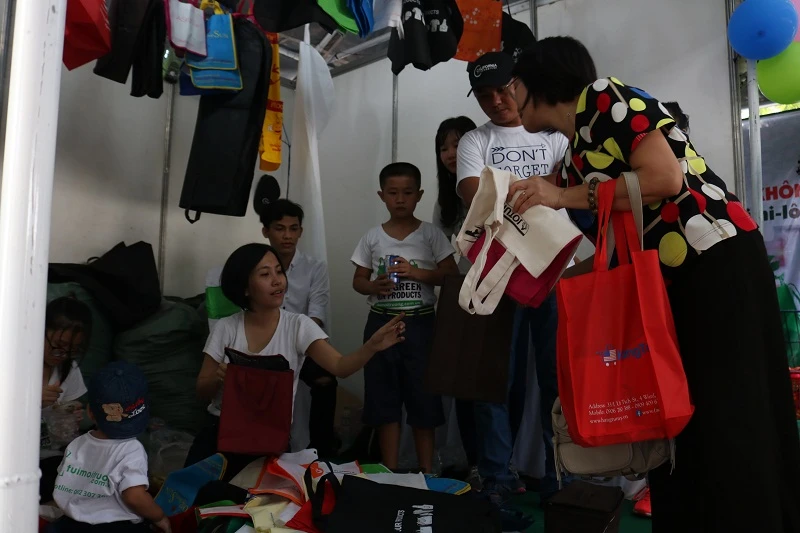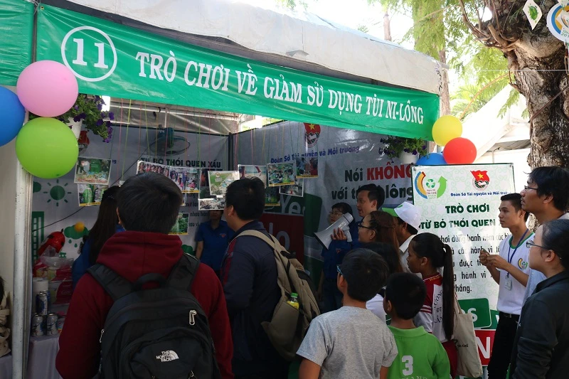 Khu vực tuyên truyền về việc sử dụng bao nylon cũng chật cứng người.
