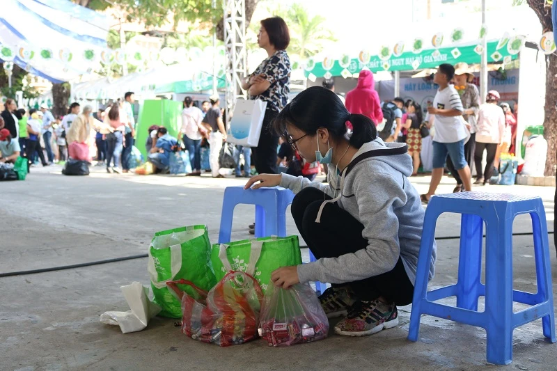 Rác thải đã được người dân phân loại sẵn trong từng bao nhỏ rồi mang đến ngày hội lần này.