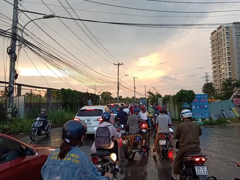 Trời mưa ngập, đường hẹp là nguyên nhân chính dẫn đến tình trạng kẹt xe.