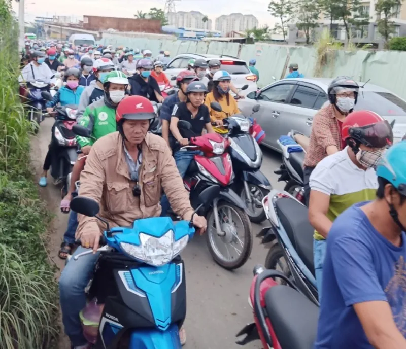 Tình trạng kẹt xe kéo dài làm nhiều phương tiện đứng máy, người dân càng khổ sở hơn.