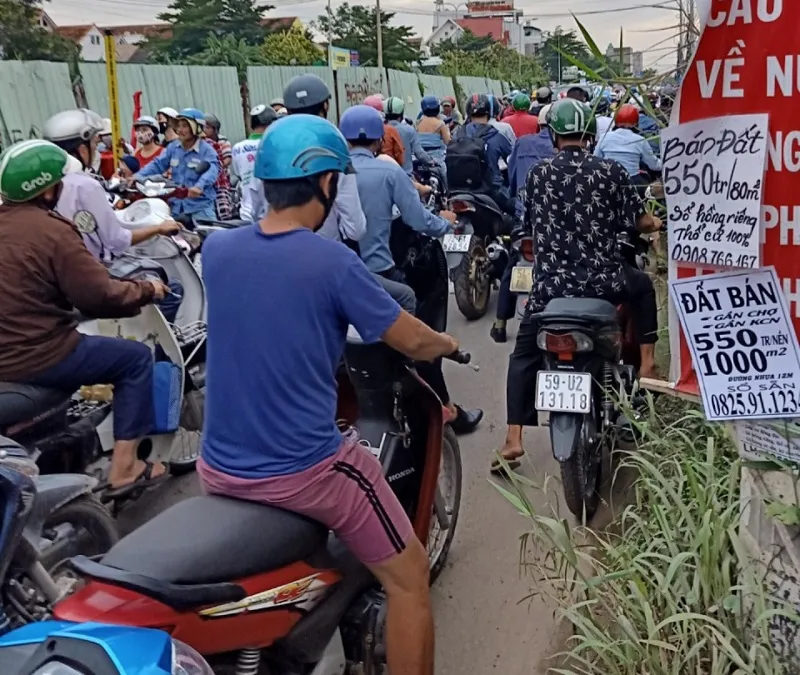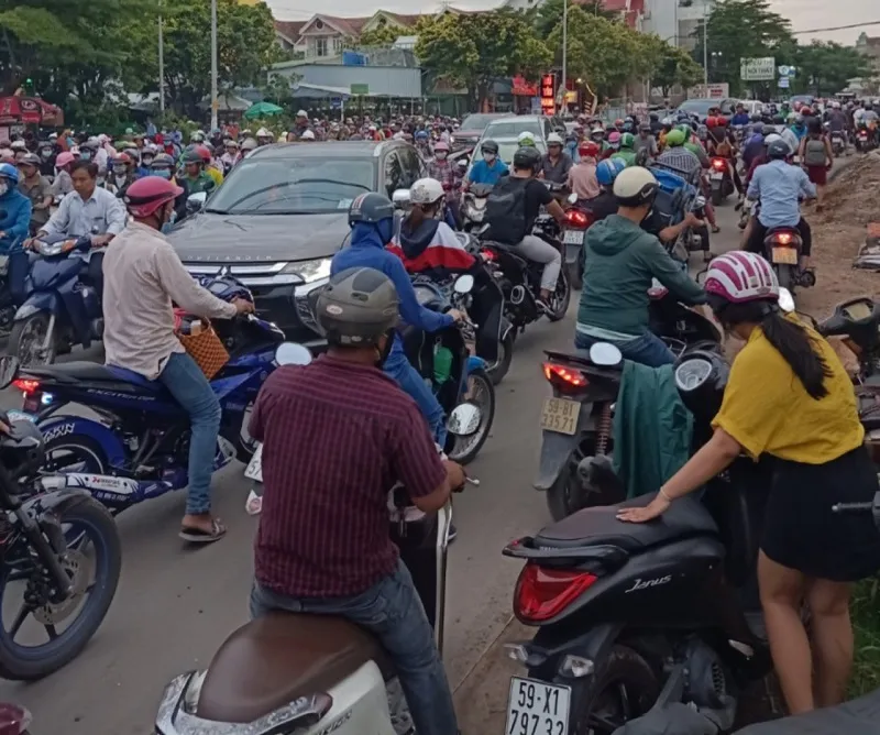 Ghi nhận của PV vào lúc 17 giờ ngày 28-9, lưu lượng phương tiện tăng đột biến đổ dồn vào đường Đỗ Xuân Hợp (ngay cầu Nam Lý) gây ùn tắc nghiêm trọng.