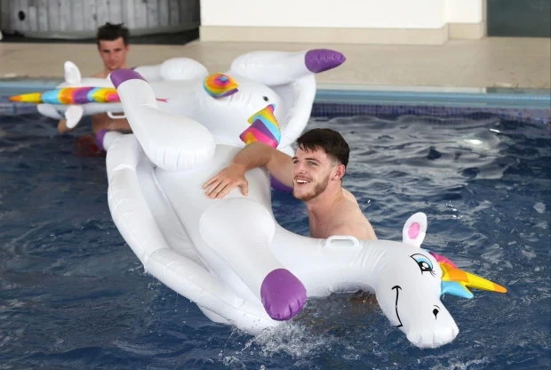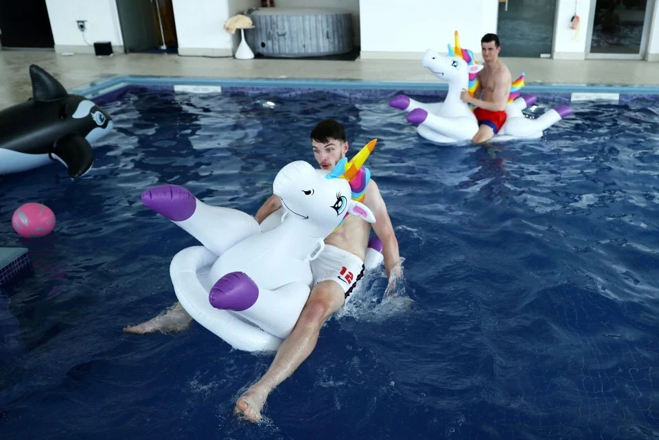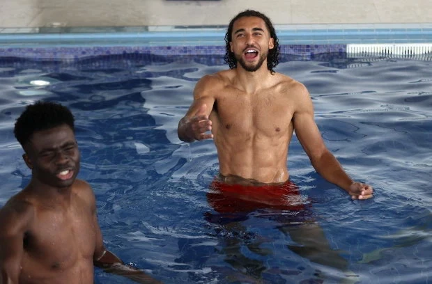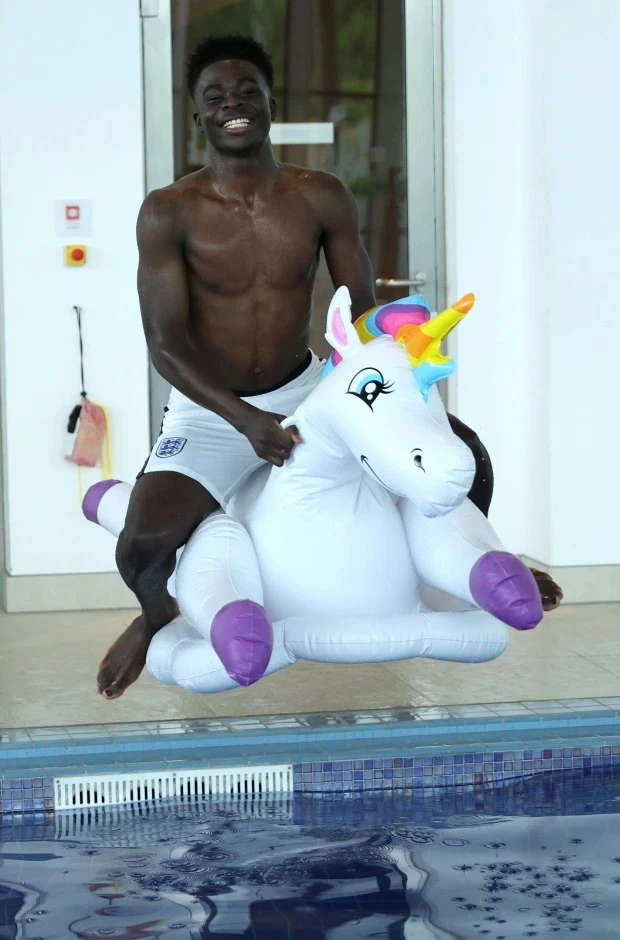 Trong khi HLV Southgate bận bịu trả lời phòng vấn thì các cầu thủ được tự do thảnh thơi với đủ trò nghịch ngợm bên hồ. Vì không có những nàng WAS bên cạnh nên họ đã thay thế bằng những trò phá phách với phao hình thú rồi cười đùa vui vẻ.