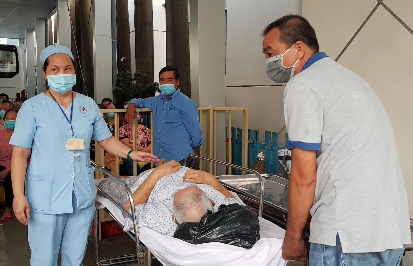 Một bệnh nhân được chuyển tới bệnh viện chăm sóc. Ảnh: TRẦN NGỌC