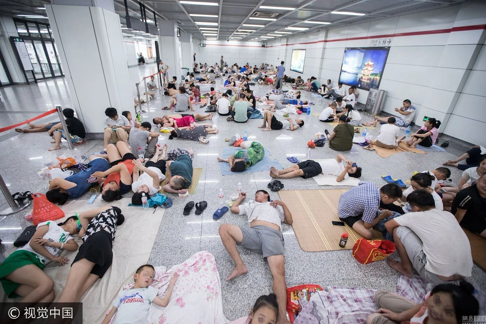 Tại Hàng Châu, miền Đông của Trung Quốc, hàng trăm người tụ tập tại một ga tàu điện để tránh nóng Ảnh: VCG.
