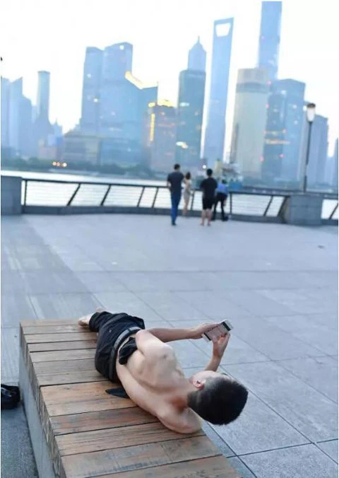 Có người còn thản nhiên cởi trần nằm giữa tụ điểm du lịch của thành phố. Ảnh: Shanghaiist