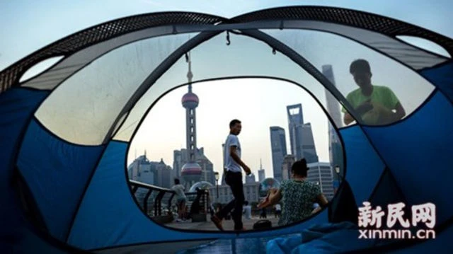 Chính quyền địa phương cho biết, người dân ở đây mang lều, chiếu, khăn trãi rồi "định cư hàng đêm" tại khu vực bến tàu Thượng Hải, nơi được xem là tụ điểm du lịch nổi tiếng nhất thành phố. Họ thậm chí còn cởi trần, nằm phơi mình trên các ghế đá ở khu vực này.