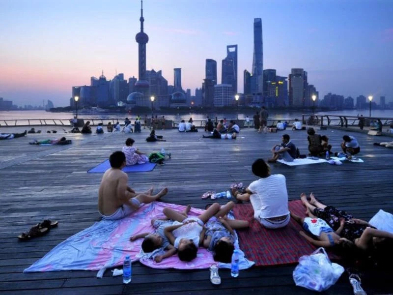 Tại thành phố Thượng Hải, người dân đang nườm nượp đổ ra bến tàu Thượng Hải để qua đêm nhằm hưởng đượng làn gió biển dưới cái nóng oi bức lên 40,9 độ C, Shanghaiist đưa tin.