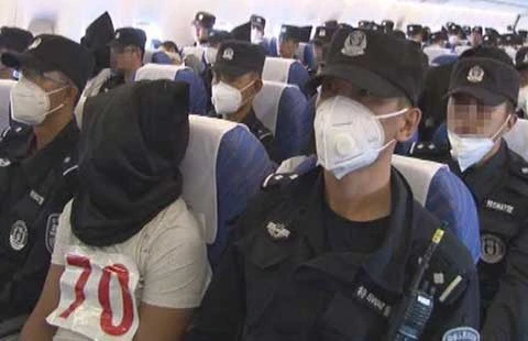 109 người dân tộc Duy Ngô Nhĩ bị Thái Lan trục xuất về Trung Quốc hôm 9-7. Ảnh: TWITTER