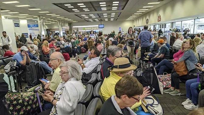 Hàng ngàn người tập trung tại sân bay quốc tế O’Hare ở TP Chicago, bang Illinois (Mỹ). Ảnh: TWITTER